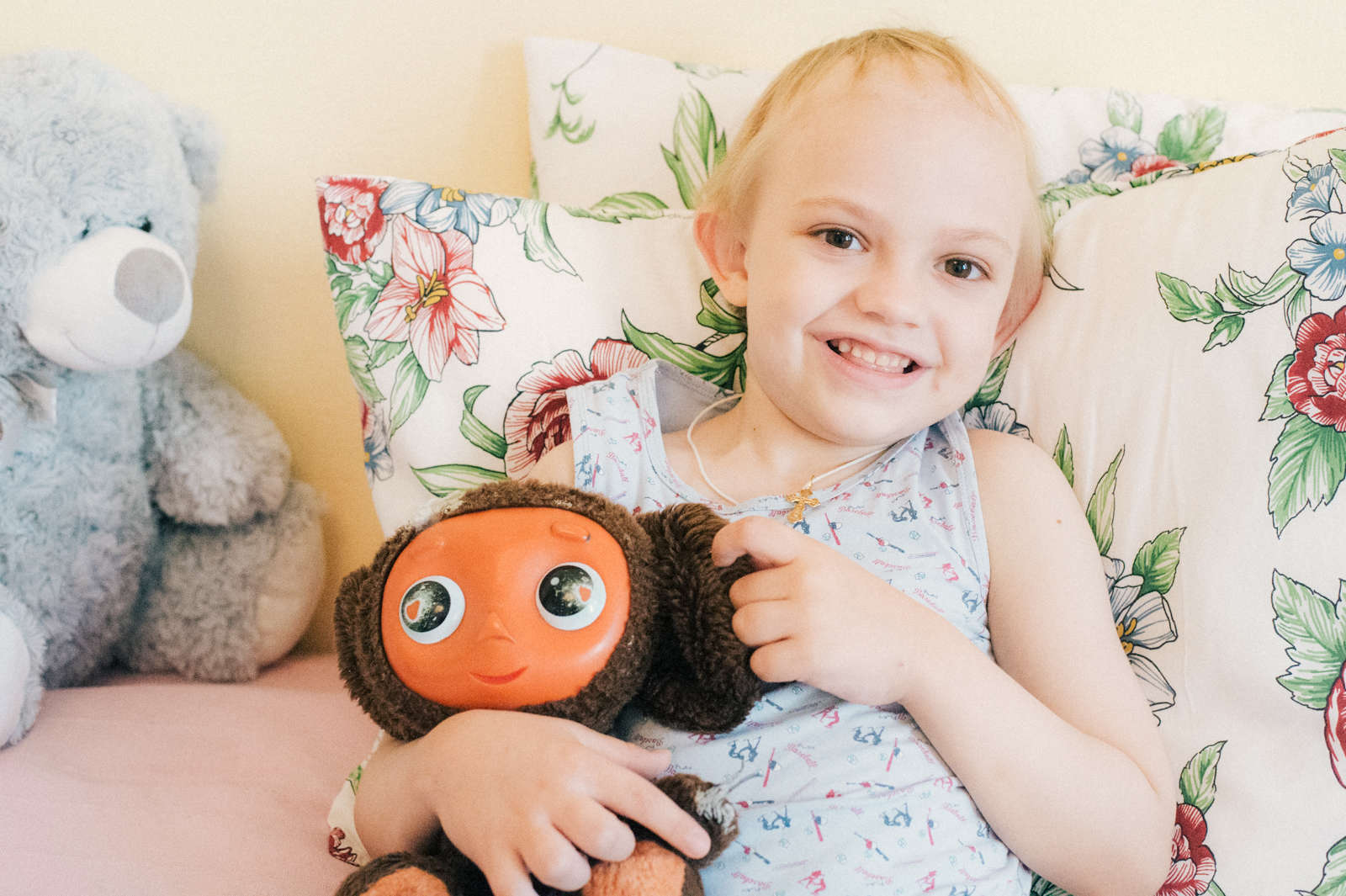 В прошлом октябре обследование показало рецидив. Сашу перевели в НИИ им. Горбачевой. Во время лечения рядом всегда была мама. В палате Саша любит собирать железную дорогу, смотреть мультфильмы с любимым персонажем — паровозиком Томасом. С удовольствием собирает пазлы, предпочитает крупные. В свои 5 лет Саша не говорит, но все равно остается активным и улыбчивым ребенком.