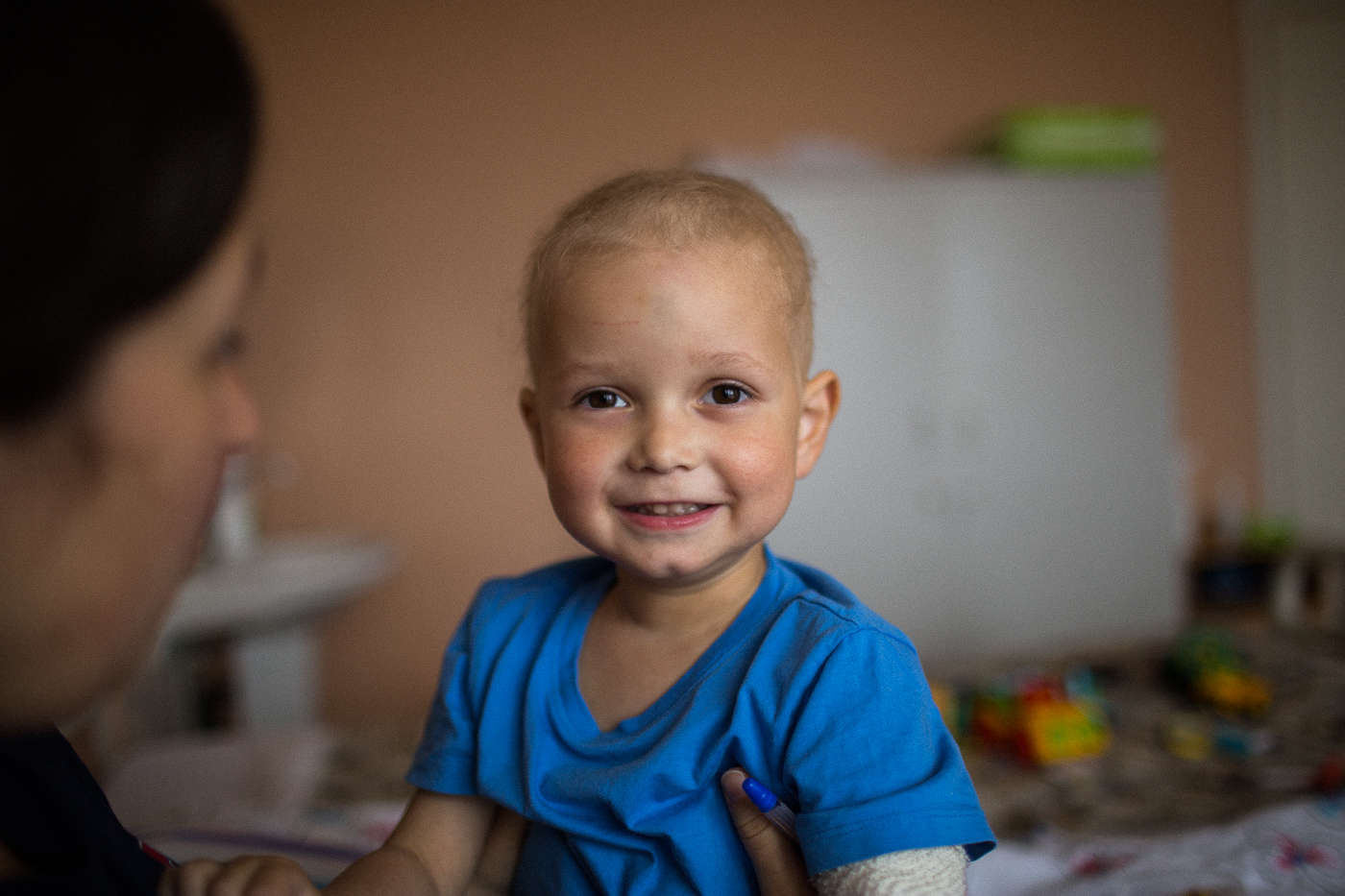 Матюша, как называют его родные, похож на темноглазого ангелочка. Искрящийся ореол вокруг головы создают светлые волосы, только начавшие отрастать после первого курса химиотерапии. Матвей то хмурится, то заливисто смеется, то задумчиво рассматривает картинки в любимых книжках — со сменой настроения обязательно приходит смена занятия. За чем-то одним внимание малыша долго не удержишь: вот он увлеченно катает машинки, затем с таким же интересом рисует красками, потом просит почитать маму сказки. А вот за окном пролетел самолет и увлек все внимание Матвея за своим железным хвостом.