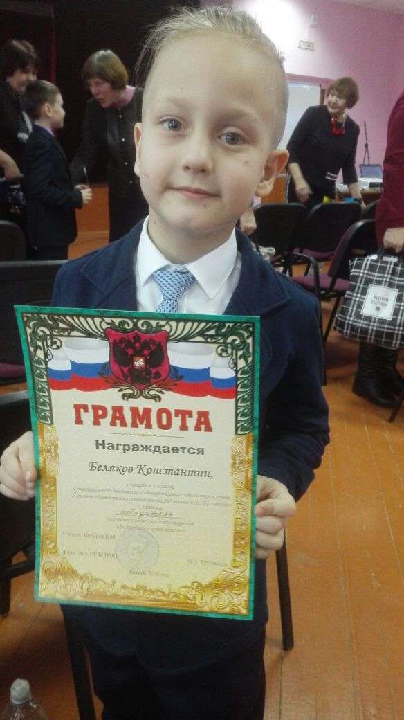 Костя закончил начальную школу и перешел в 5-ый класс. Хочет пойти в музыкальную школу. Несмотря на то, что он плохо видит, у него хорошо развит слух. Костя играет на барабанах – занимается в Губернаторском дворце и на дому.